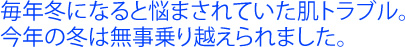 O:私もともと乾燥肌でアトピーもあって寒い季節は肌のトラブルが多かったんです。
